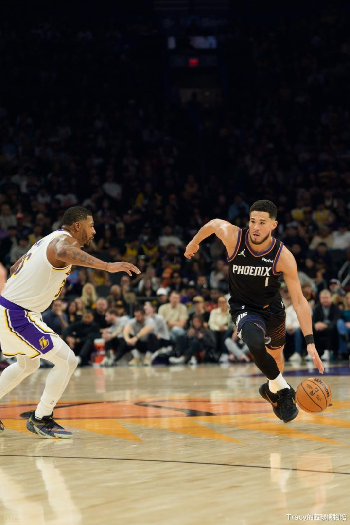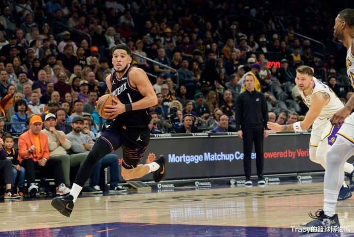 第三节布克并没有打满,末节他回来以后带队疯狂追分,一度反超,但最后时刻对詹姆斯打手犯规,葬送球队。